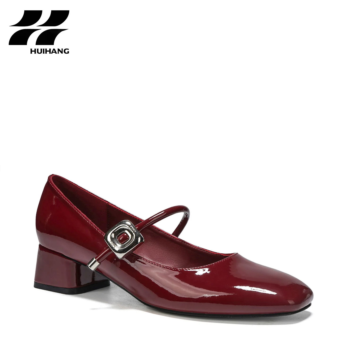 Elegant Red Mary Jane Pumps for Women Comfortable Slip-On Closure with Soft Square Heel Buckle for Party Evening Dress Shoes